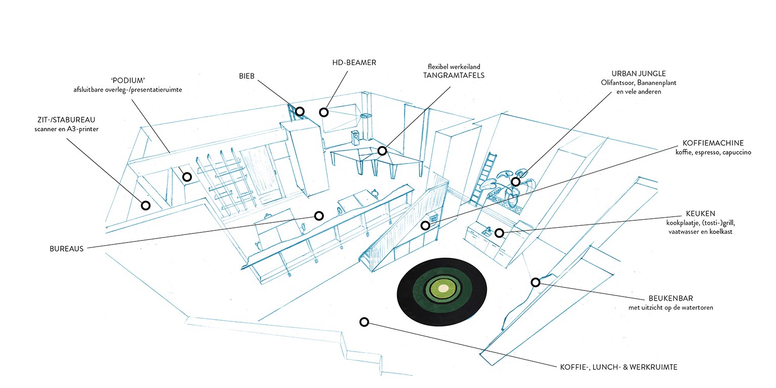 DAAR was een sfeervolle en compleet uitgeruste co-working space en werd gebruikt als kantoorruimte voor zelfstandig ondernemers en als ruimte voor het geven van o.a. presentaties, workshops, cursussen, bijeenkomsten en vergaderingen.