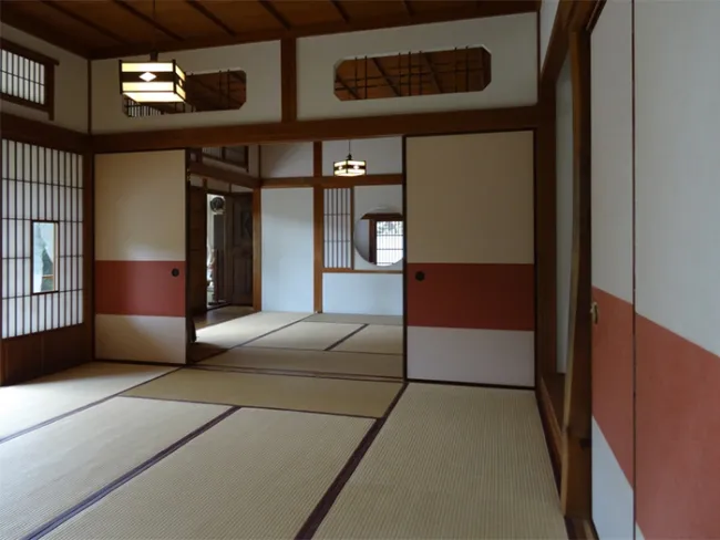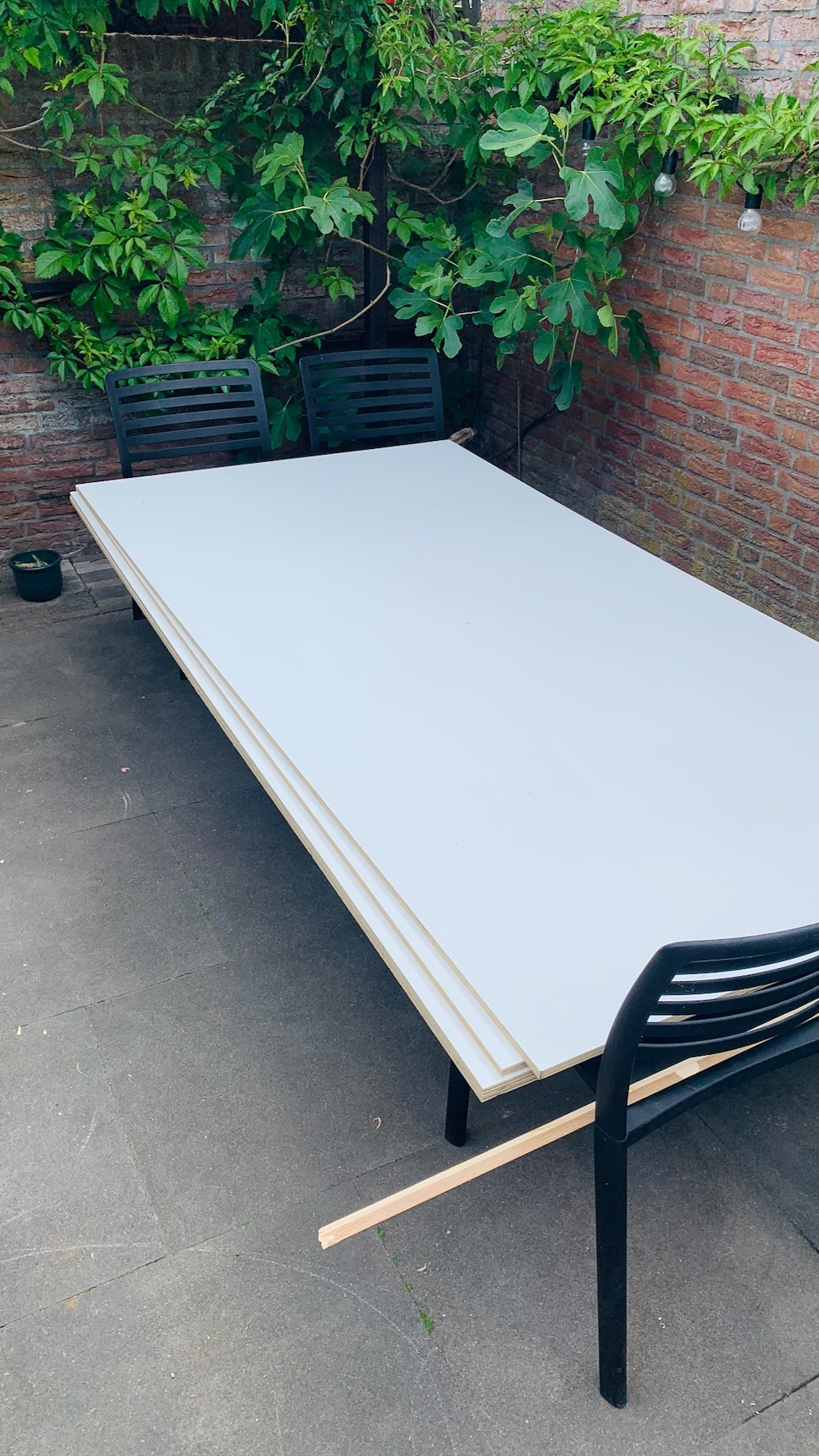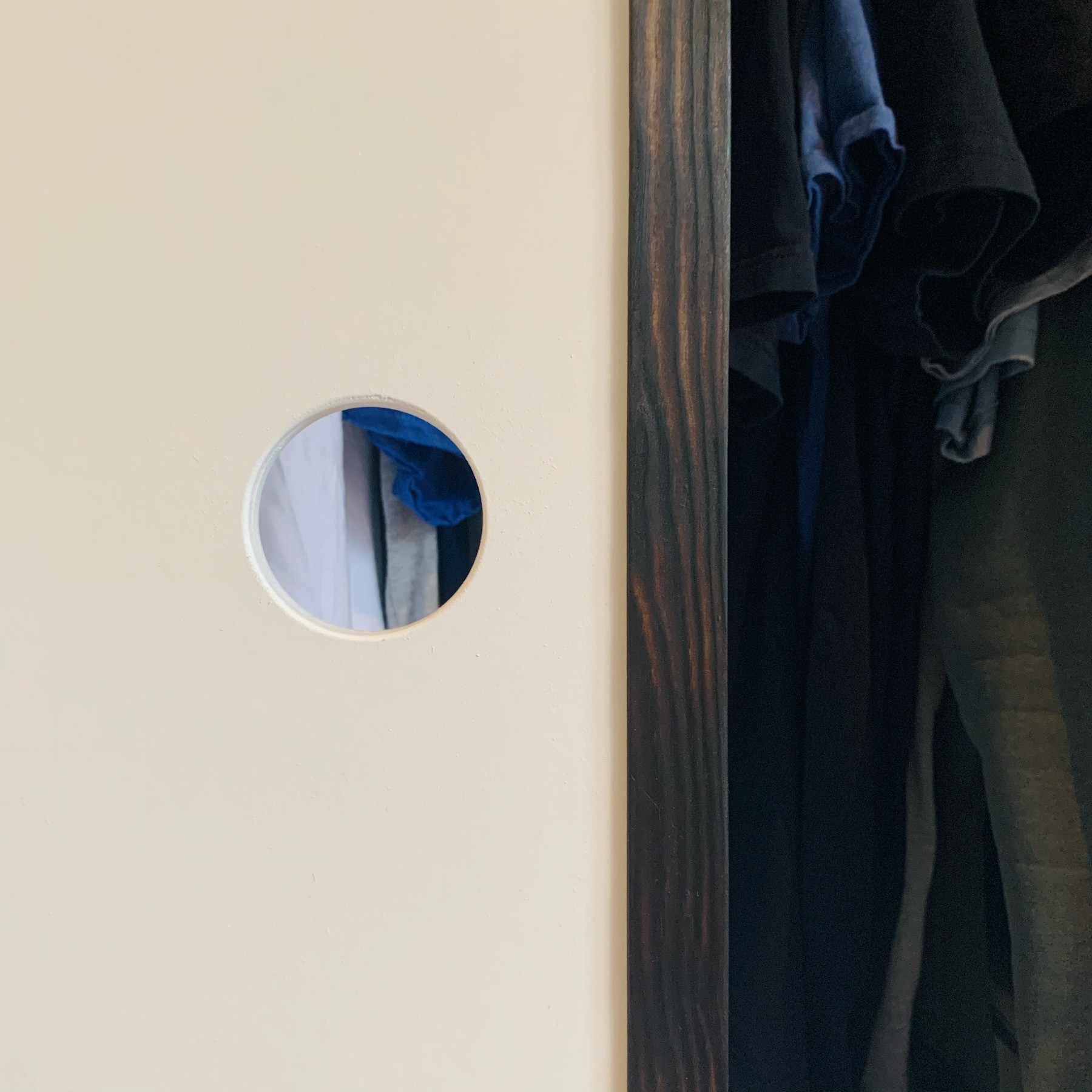 Ik was eigenlijk al bezig met het maken van schuifdeuren voor onze kledingkast, toen ik de deuren zag in de geweldige Ghibli film "My Neighbor Totoro". Veel was er niet nodig om in de buurt van het ontwerp te komen: ronde gaten als handgrepen, een subtiele houten omlijsting (uiteraard zwart gebrand en geölied) en een zachte rood/roze baan die doorloopt over alle vier schuifdeuren.