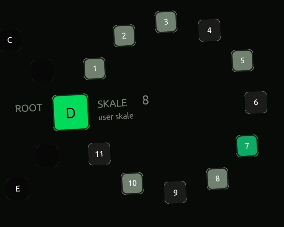 MIDI-controller: a new flexible way to play melodies and chords within your own scales.
